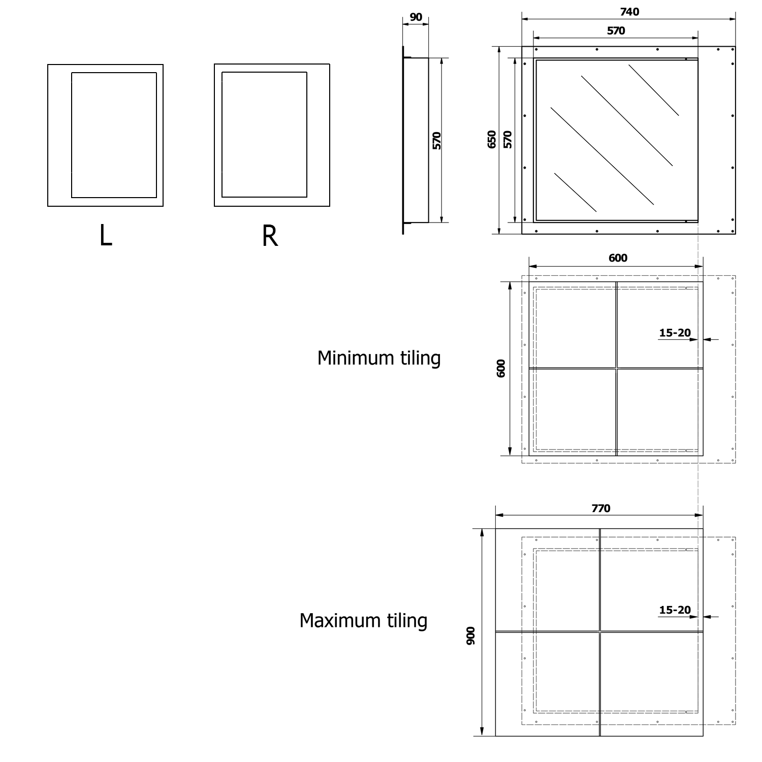 ZARZ burkolható szerelőajtó csempe alá, klik-klak nyitószerkezettel, 60x60cm (ZV165K)
