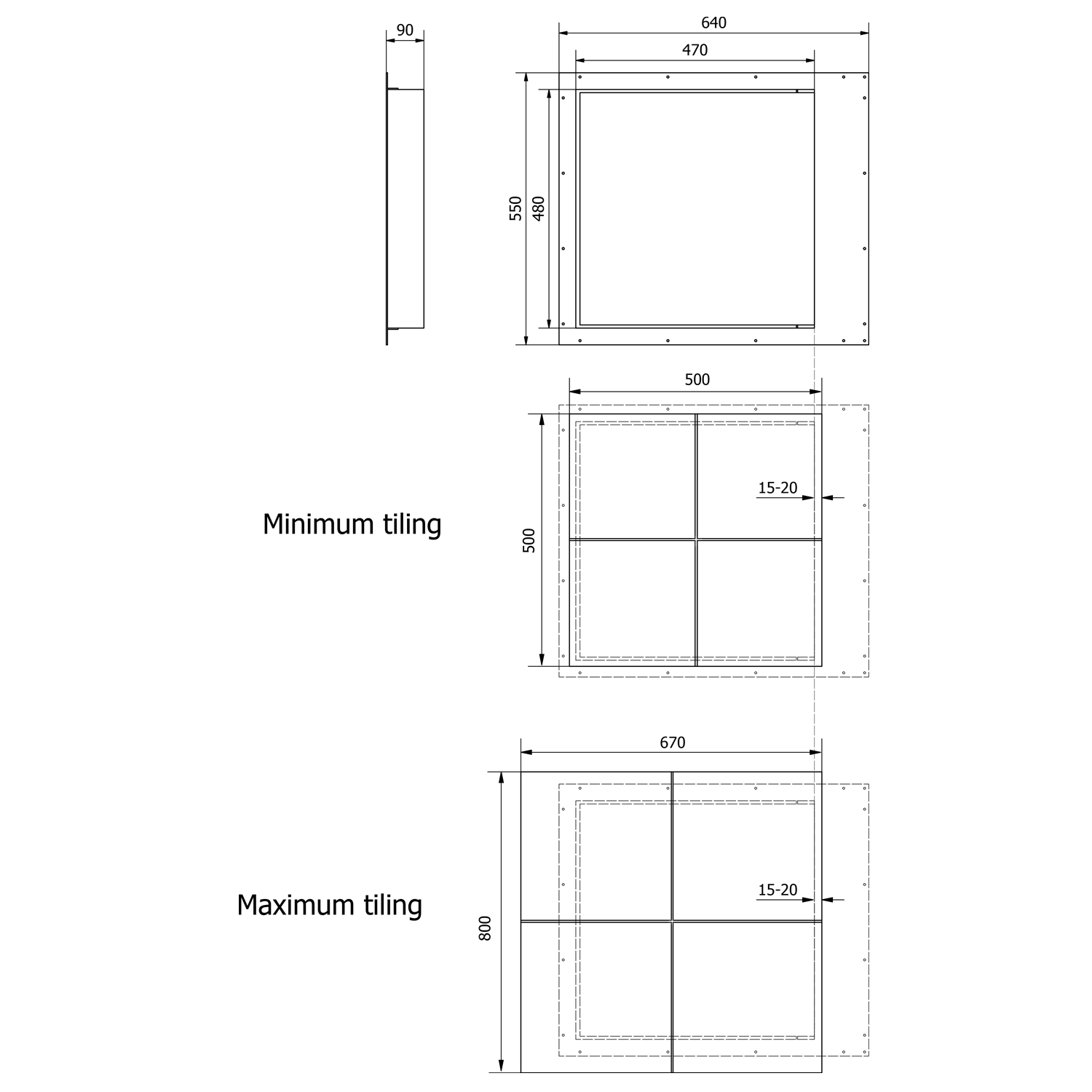 ZARZ burkolható szerelőajtó csempe alá, klik-klak nyitószerkezettel, 50x50cm (ZV234K)