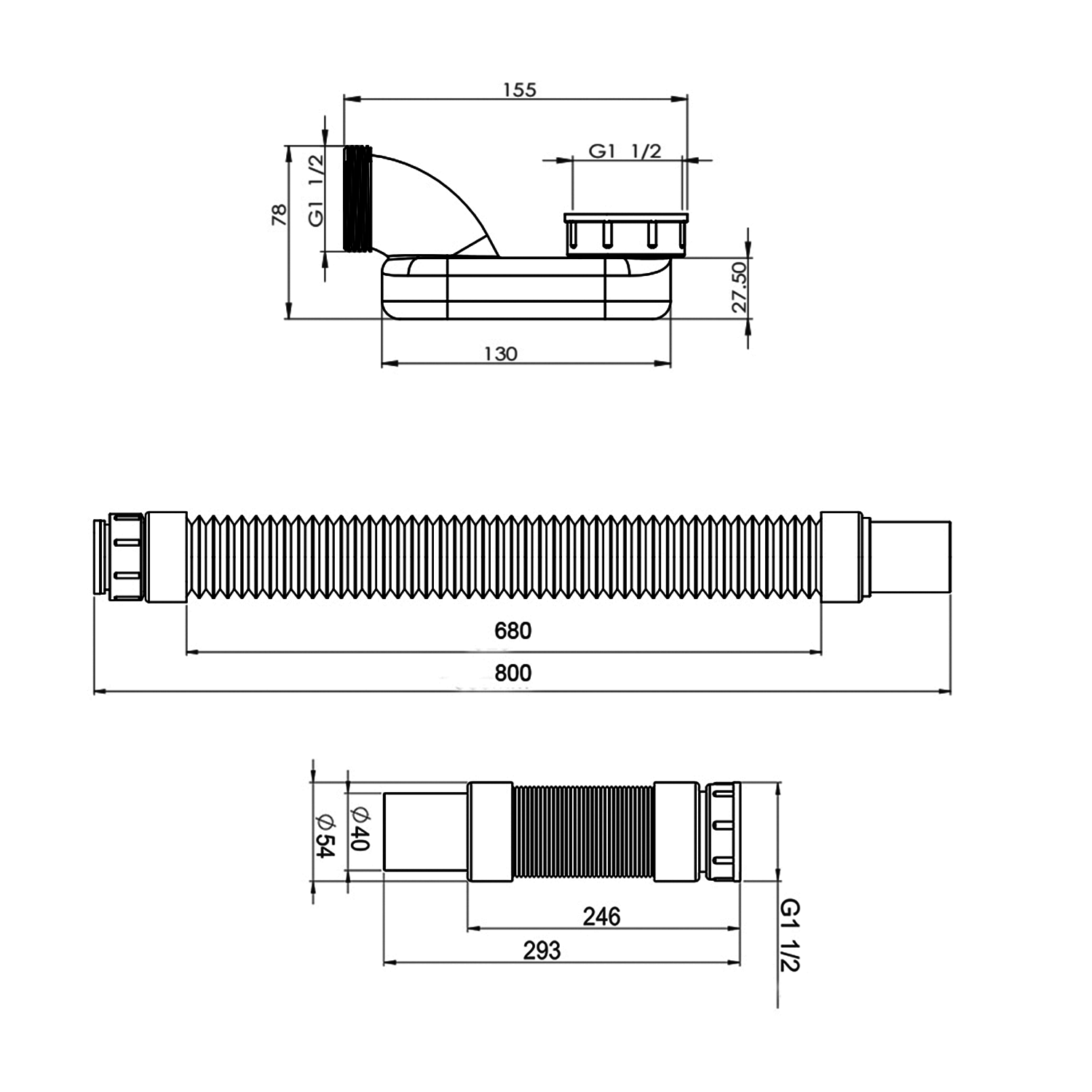 POLYSAN szifon flexibilis gégecsővel (72194)
