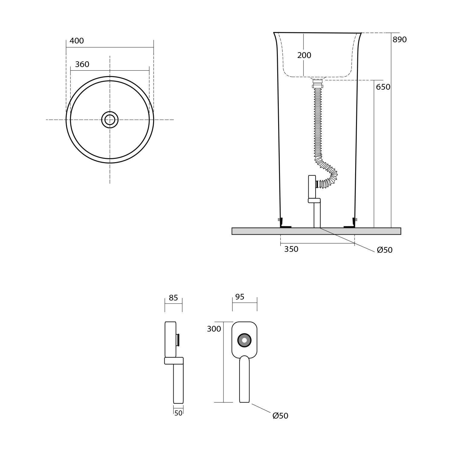 KERASAN THE NEW YORKER szabadonálló kerámiamosdó, alsó kifolyású, 40x89x40cm (564601)