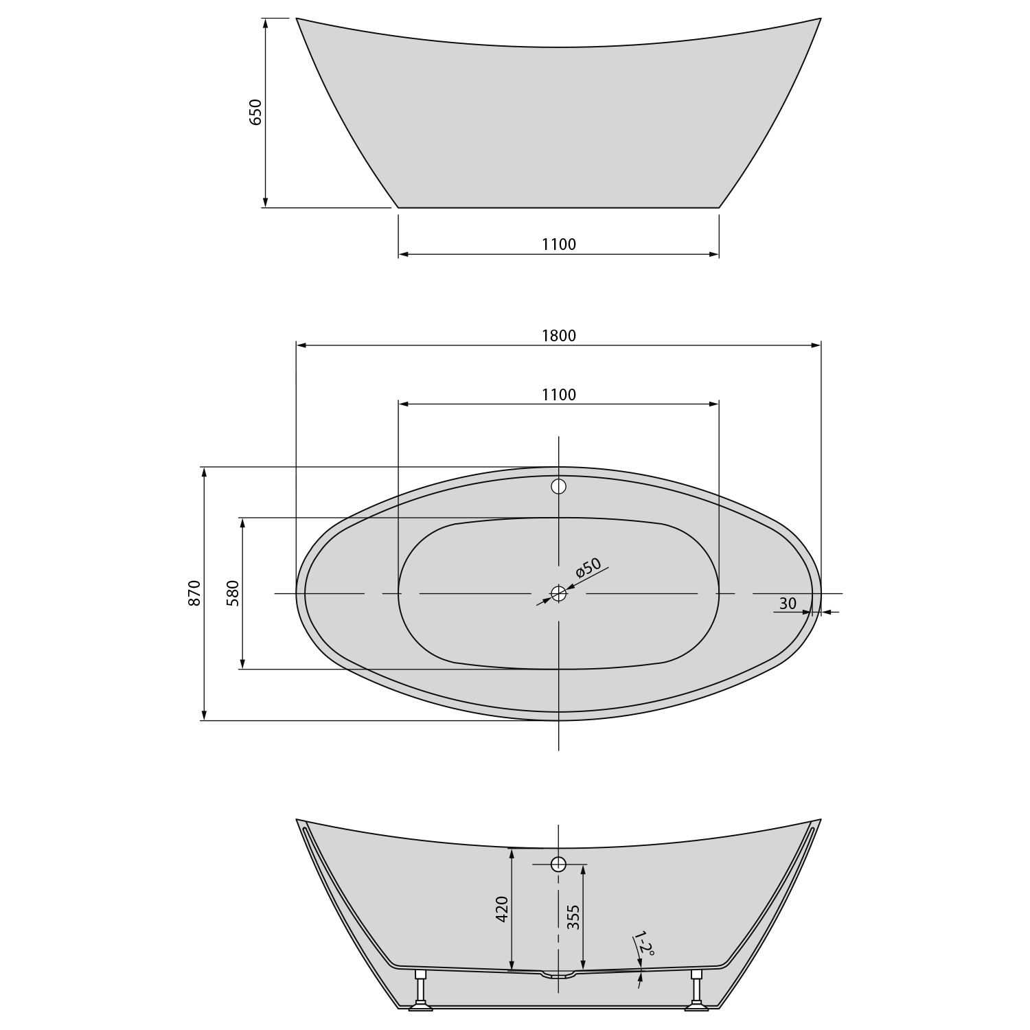 POLYSAN AVILA szabadonálló kád, 180x87x65cm (68741)