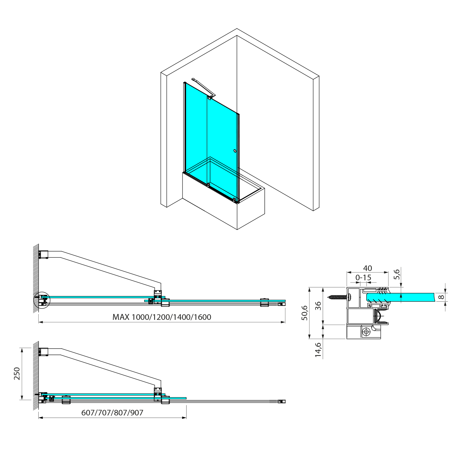 POLYSAN ROLLS BLACK kádparaván, 1400x1500mm, transzparent üveg (BS-R140)
