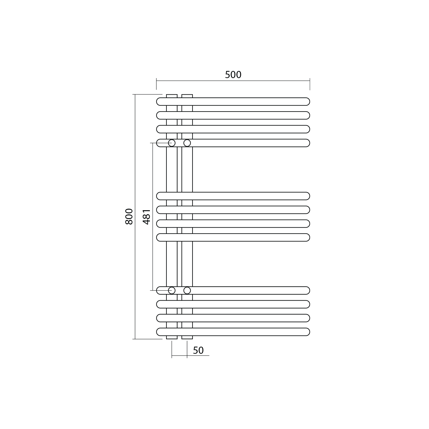 Towel rail with a 50 mm connection spacing