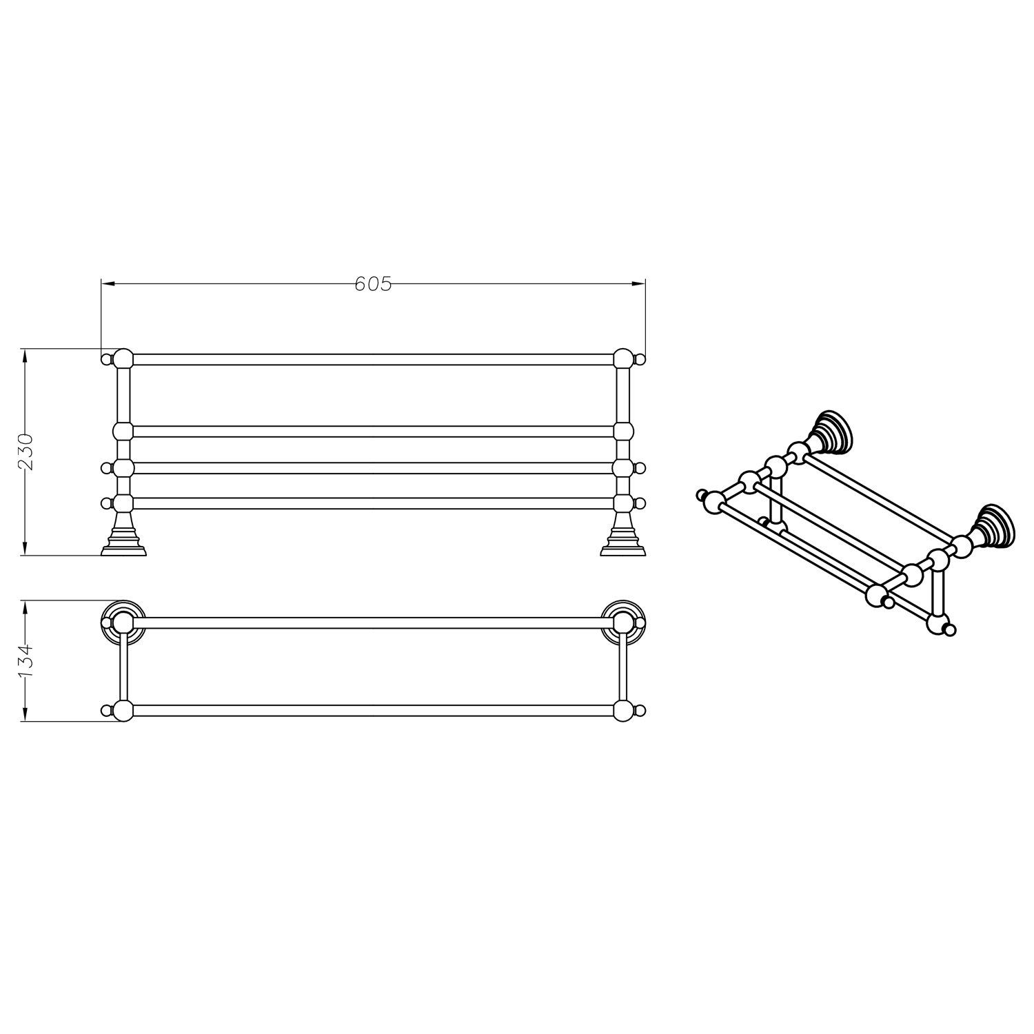 1318-14 DIAMOND törölközőtartó polc, 60cm, bronz