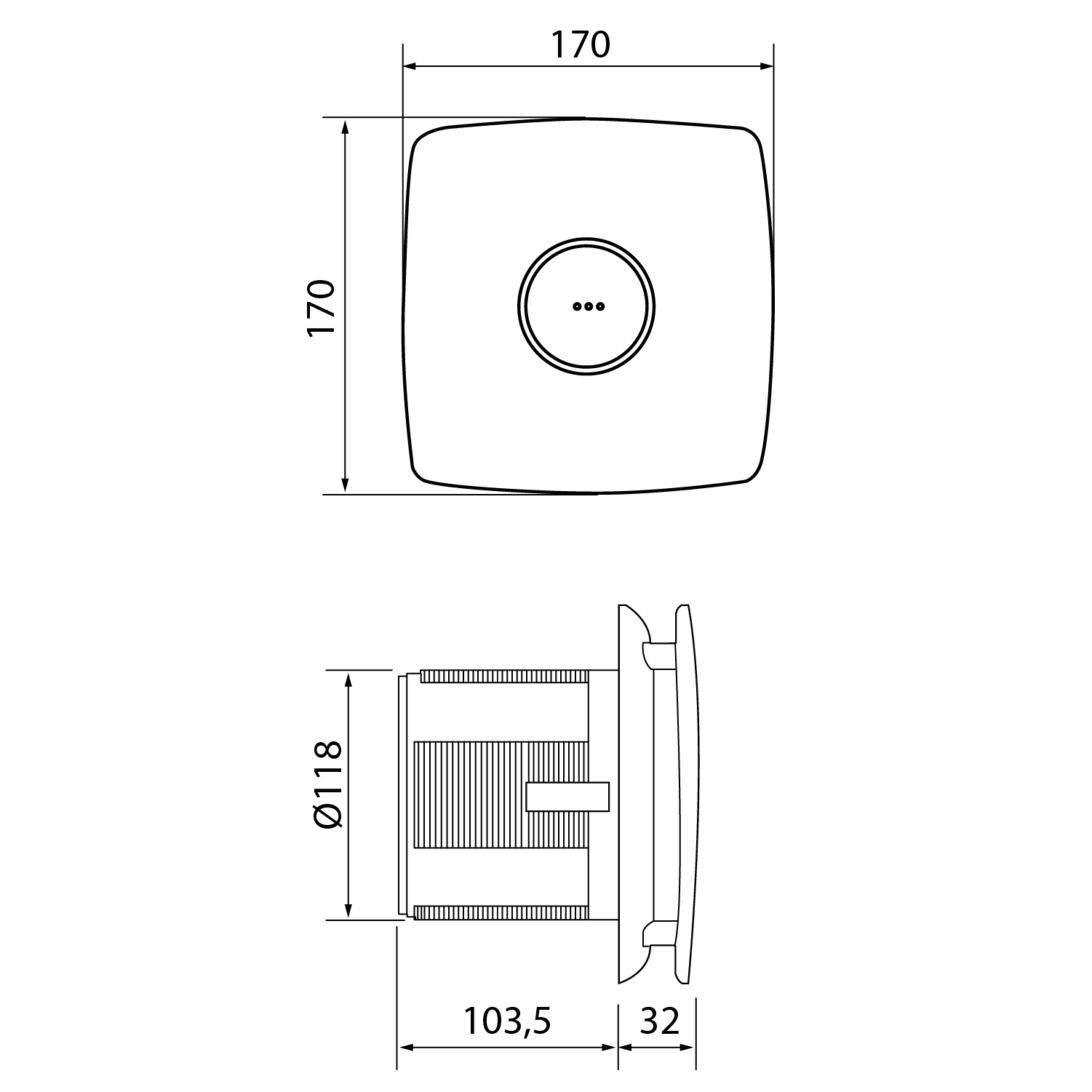 Méret170x170x103,5 mm