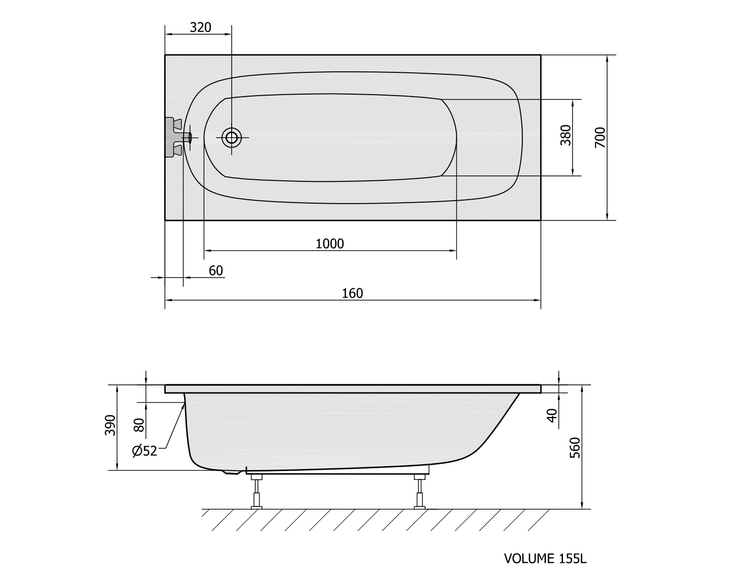 POLYSAN LAURA kád, 160x70x39cm (24611)
