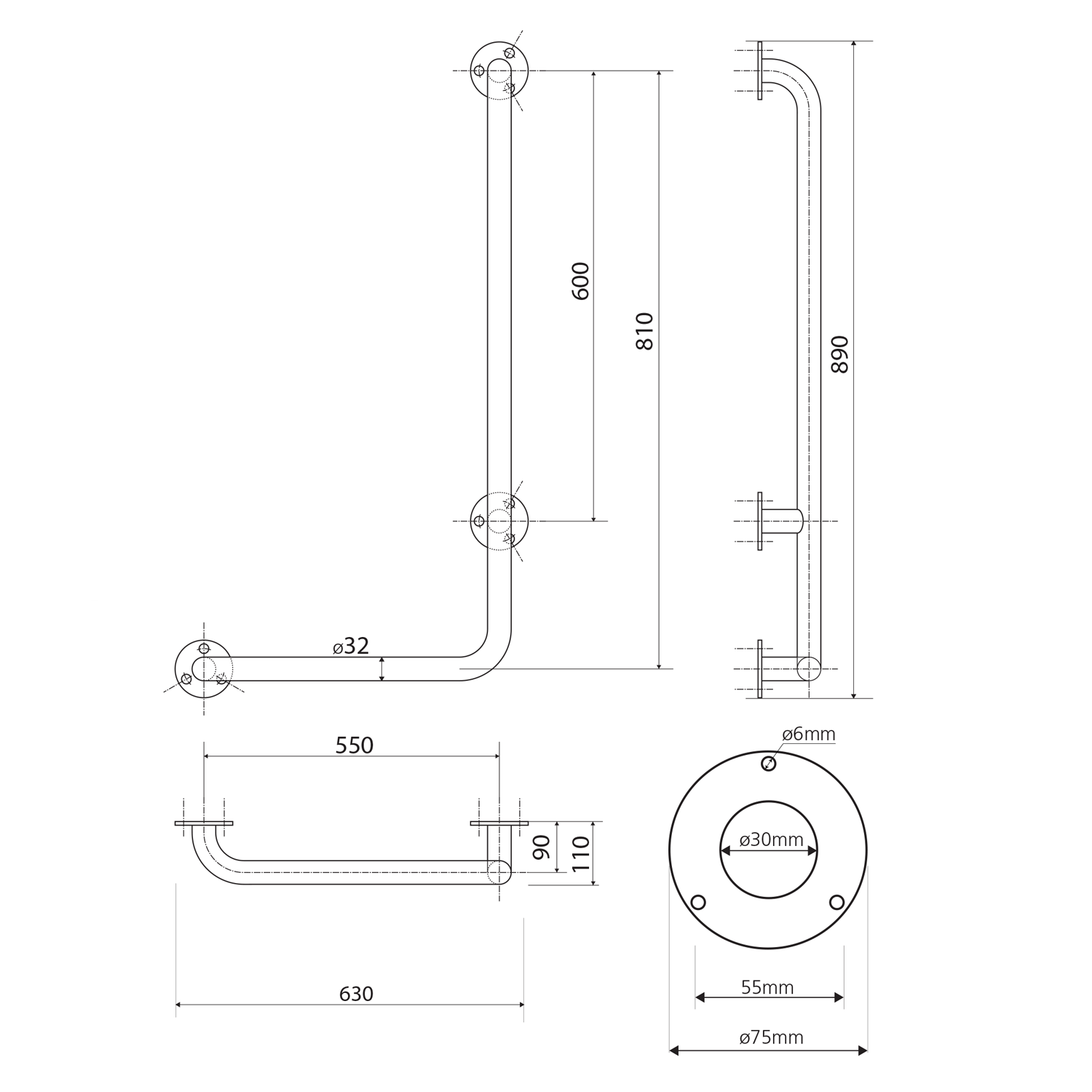 BEMETA HELP Zuhany kapaszkodó, jobbos, 630x890x110mm, polírozott (301122041) (XH524)