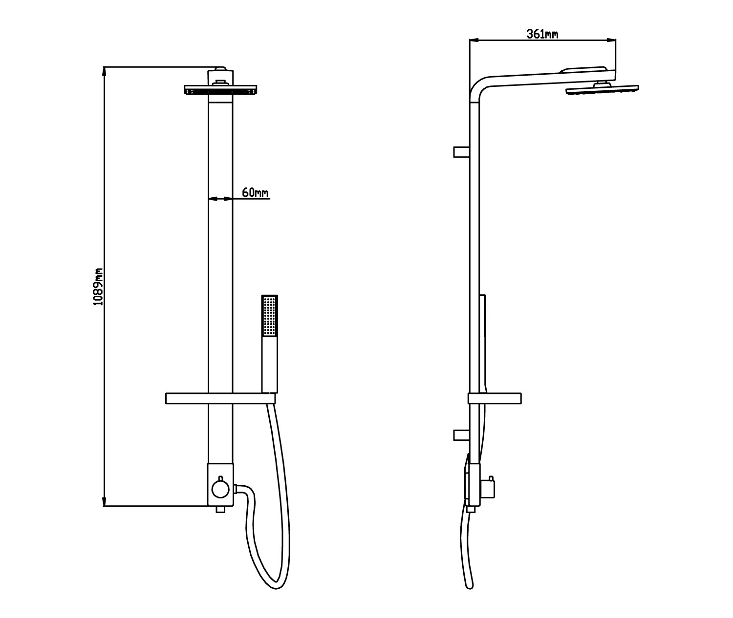 AQUALINE SIGA zuhanyoszlop, csaptelep nélkül, 1090mm, alumínium (SL650)