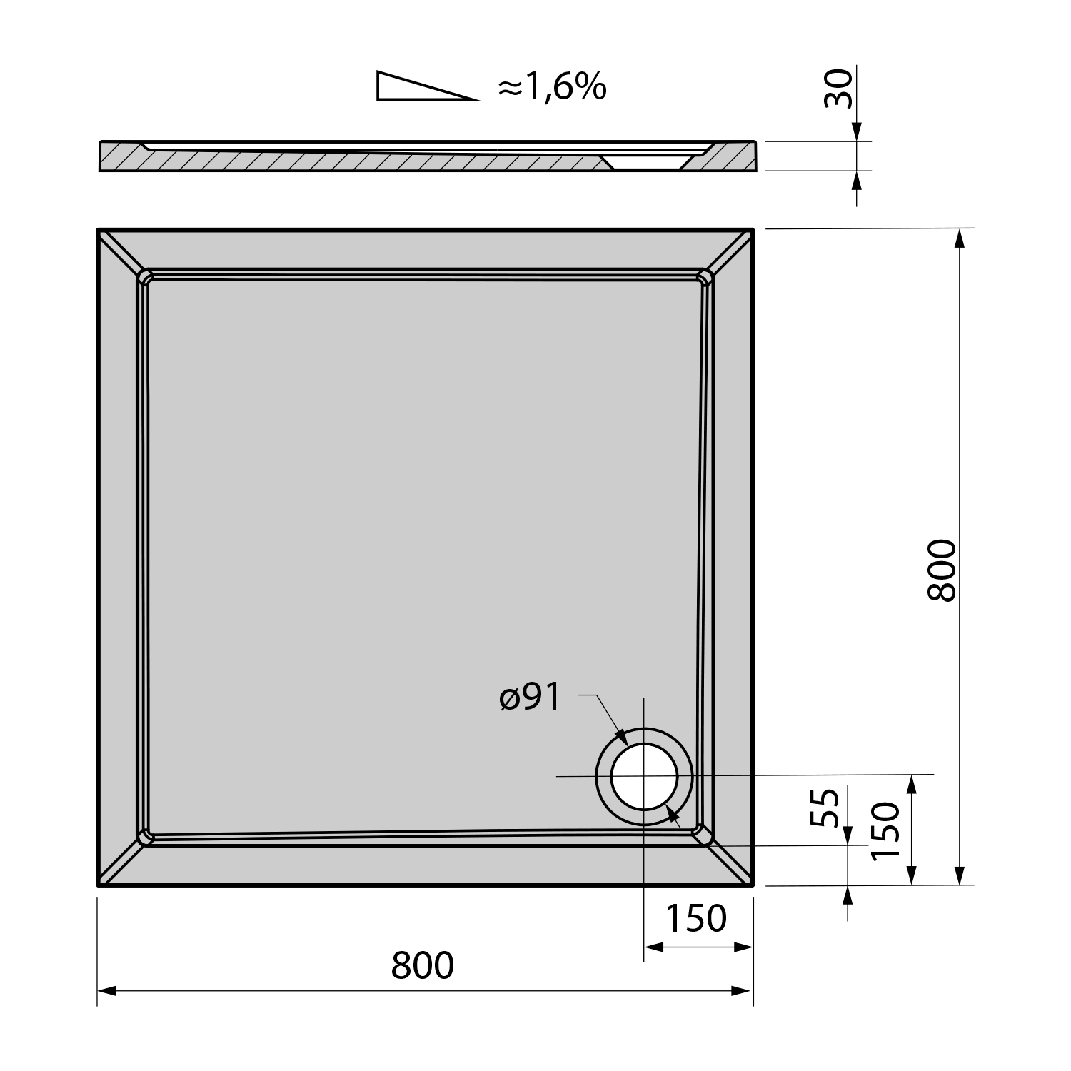11091 POLYSAN KARIA öntöttmárvány zuhanytálca, 80x70x3cm
