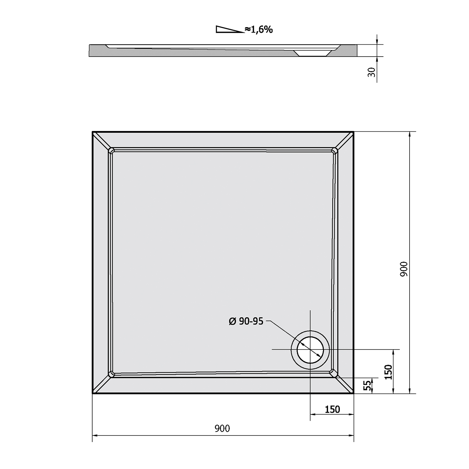 11231 POLYSAN SERA LIGHT íves öntöttmárvány zuhanytálca, 90x90x3cm
